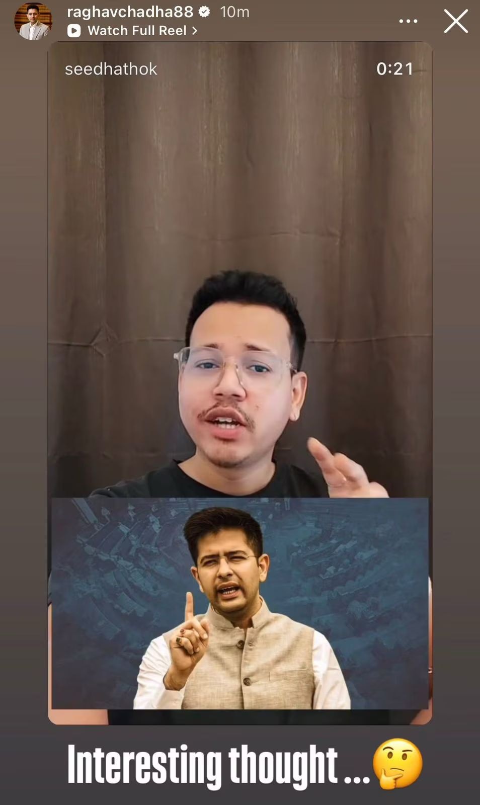 రీల్లో, సృష్టికర్త రిహాన్ ఇలా అన్నాడు, “ప్రతి పెద్దలు మరియు యువకుడు రాఘవ్ చద్దా తన స్వంత రాజకీయ పార్టీని ఏర్పాటు చేయాలని కోరుకుంటారు, విభేదాలు కొనసాగుతున్నప్పటికీ, Gen-Z పార్టీ పేరుతో లేదా అతను సరిపోయే పేరుతో”.
